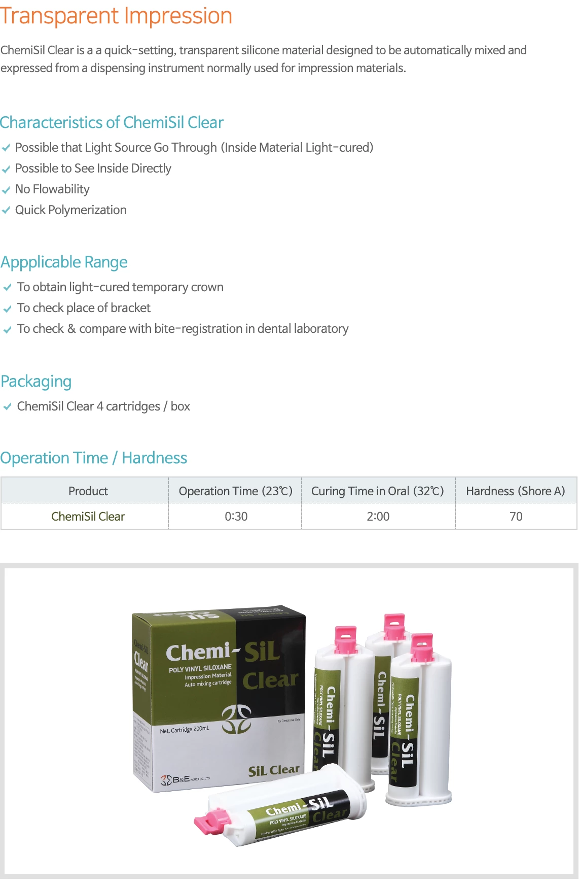 Clear silicone for making temporization